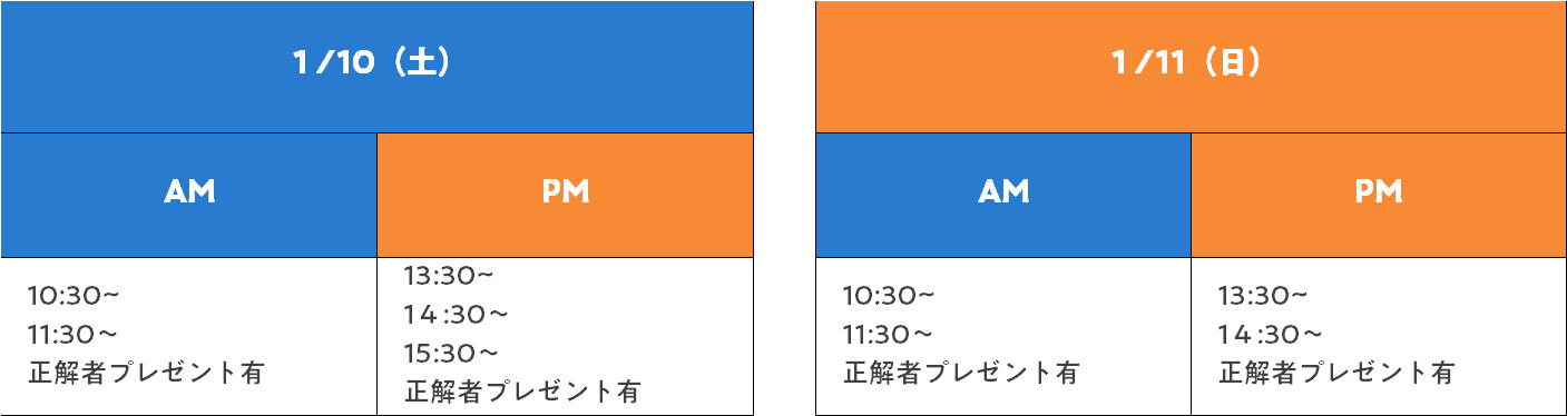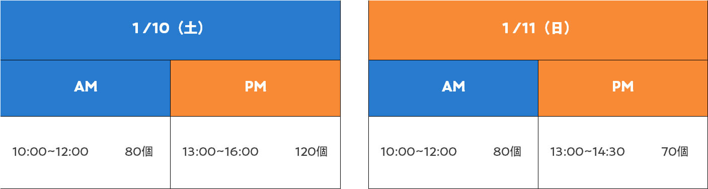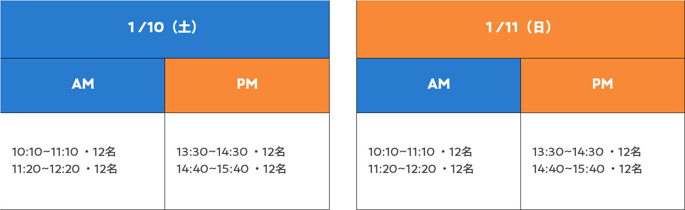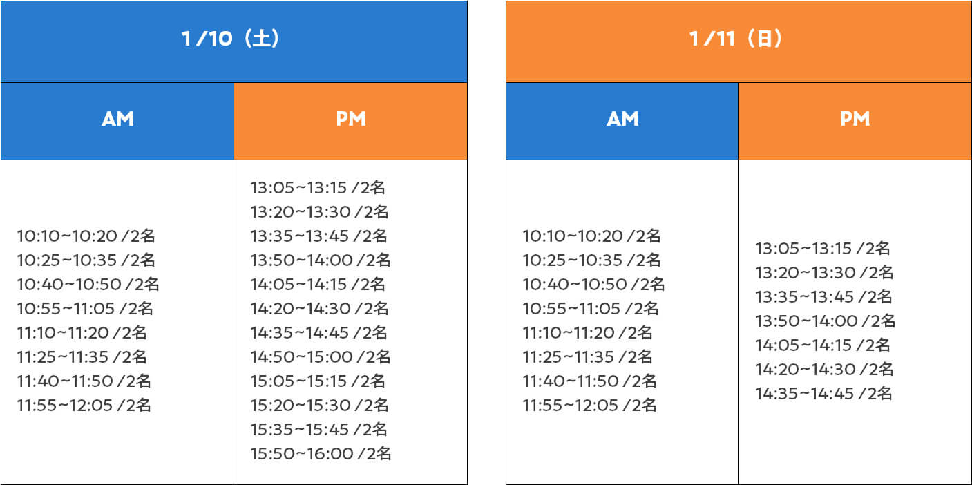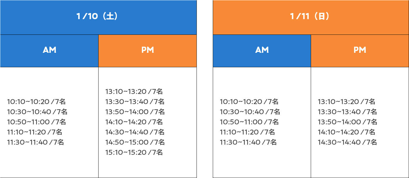 - 定員:10日午前6名・午後6名、11日午前6名・午後3名